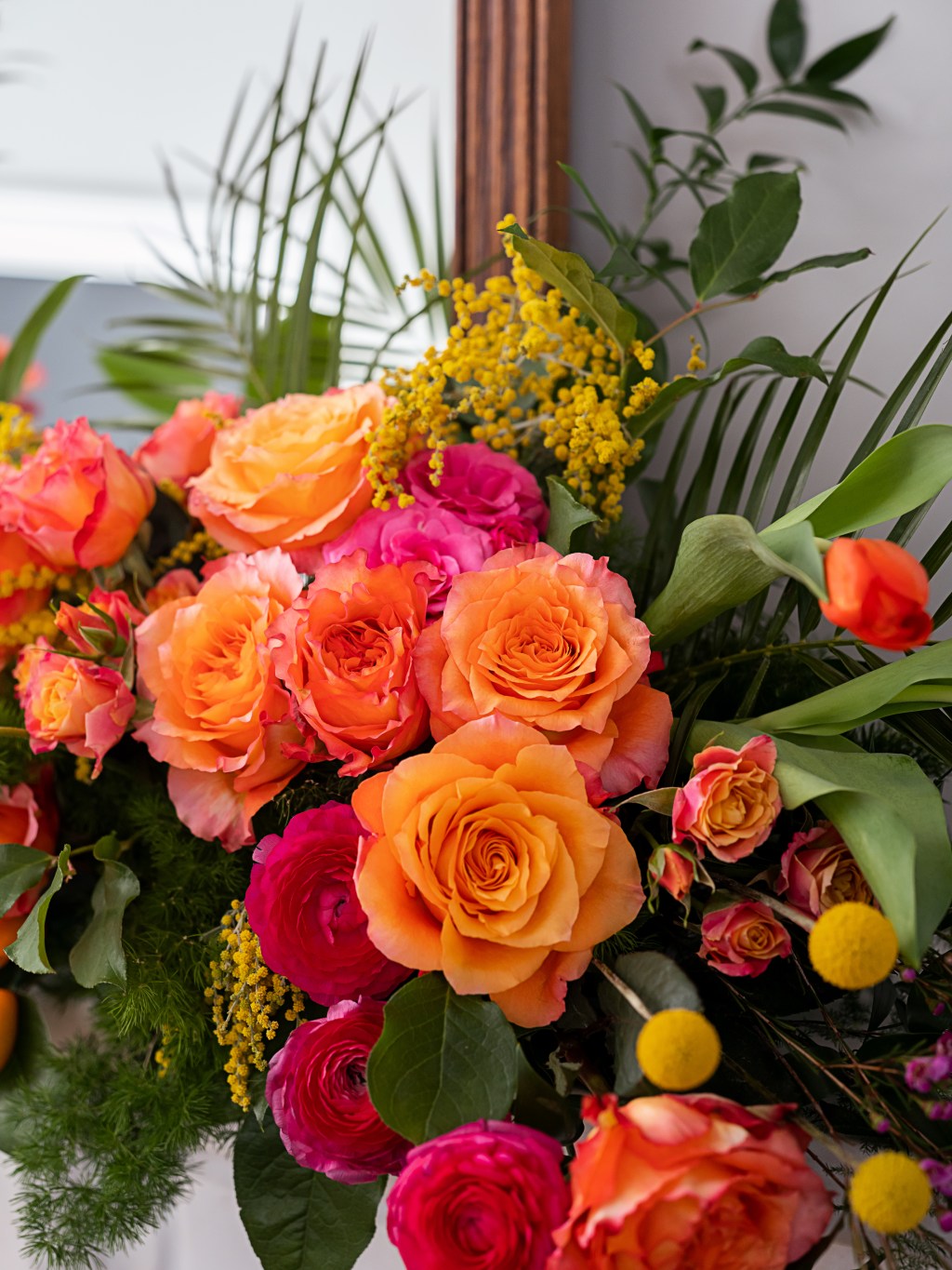 After the long, cold, dark days of winter spring has finally arrived, bursting forward with bright light and color. We recently completed our spring styled shoot and we couldn’t be more pleased with the results! We love the almost tropical feel of this fireplace installation. Utilizing Sonora spray roses with kumquats for individual pops of brilliant color helped create this explosive display. The table was set simply with matching compote table arrangements and a single orange tulip on each quest plate. A glamorous and lively presentation celebrating this special time of year! Check out our photo gallery for more inspirational images from our spring photo shoot.