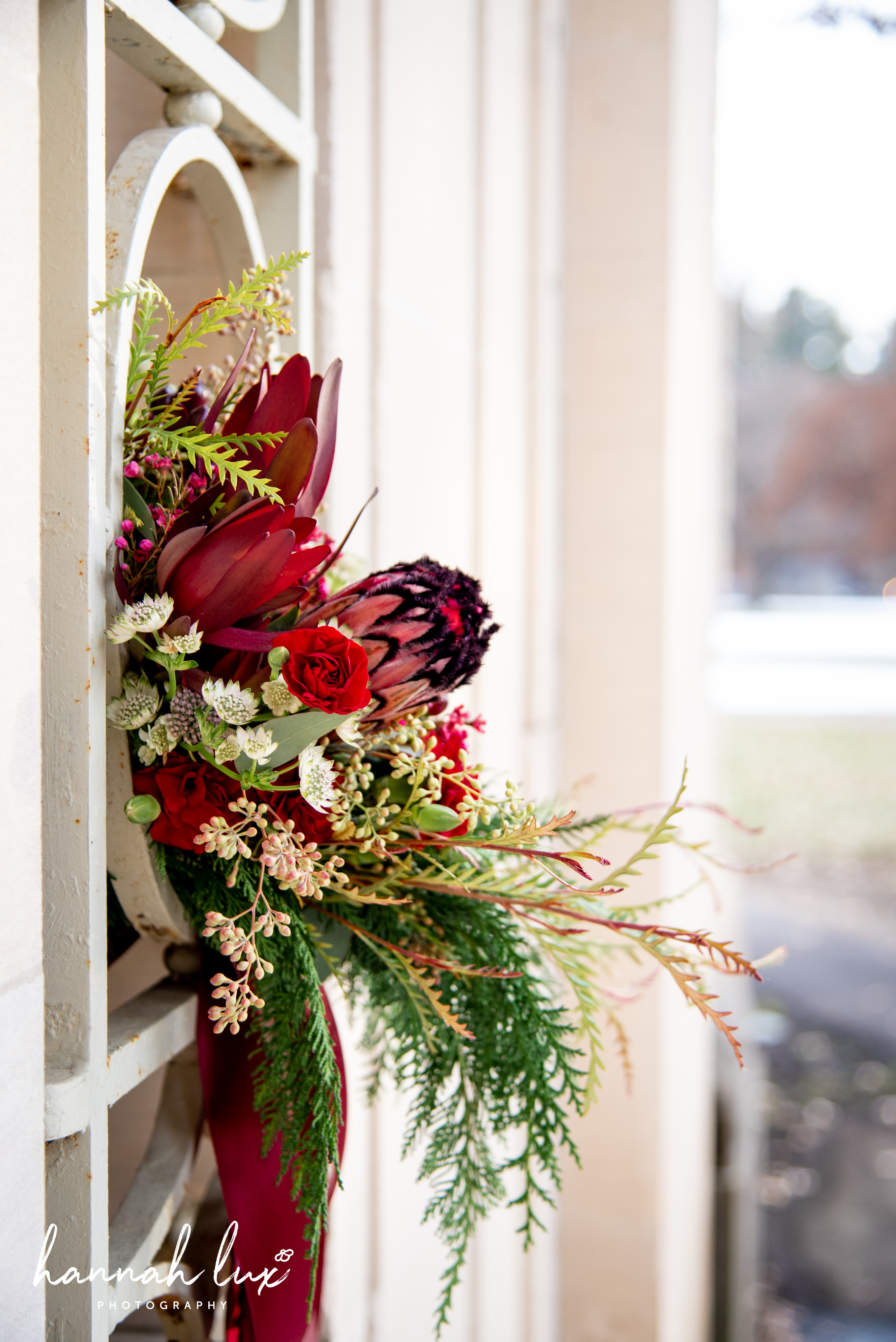 By: bostonandburke January 2, 2019January 4, 2019 Winter bridal bouquet 4 Winter wedding bouquet with garden roses and pink protea at the Saratoga Hall of Springs by Boston Burke floral design